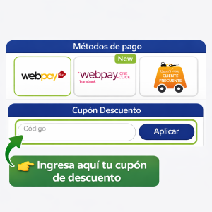 En el último paso, en la sección “Métodos de pago”, encontrarás el campo “Cupón Descuento”.